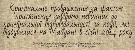 Розгляд кримінального провадження стосовно колишніх прокурора прокуратури м. Сум С. і слідчої слідчого відділу Сумського МВ УМВС України в Сумській області П., обвинувачених за ч. 2 ст. 372 Кримінального Кодексу України (притягнення завідомо невинного до кримінальної відповідальності)  Білопільським районним судом Сумської області відкладено на 10:00 12 березня 2018 року.