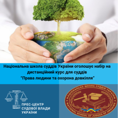 Національна школа суддів України запрошує суддів 17 вересня – 26 жовтня 2019 року взяти участь у навчанні на дистанційному курсі “Права людини та охорона довкілля”, який був розроблений Міжнародною благодійною організацією “Екологія-Право-Людина” за сприяння Національної школи суддів України та фінансової підтримки програми USAID ”Нове правосуддя” в рамках проекту “Ефективне правосуддя для захисту довкілля та екологічних прав громадян”.