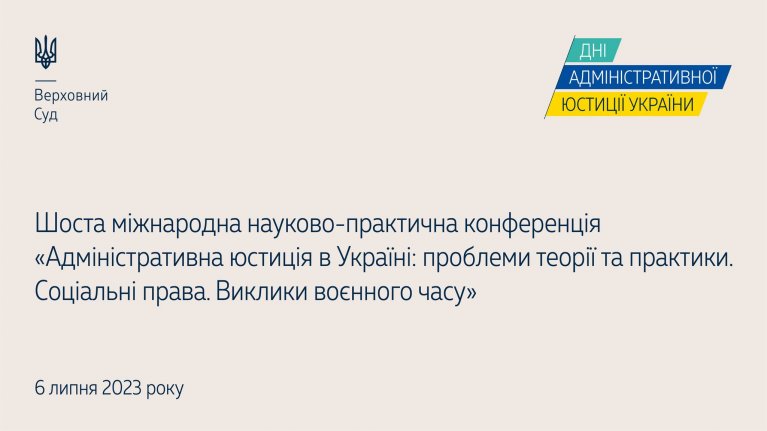 Касаційний адміністративний суд у складі Верховного Суду 6 липня 2023 року проводитиме Шосту міжнародну науково-практичну конференцію «Адміністративна юстиція в Україні: проблеми теорії та практики. Соціальні права. Виклики воєнного часу» в онлайн-режимі.